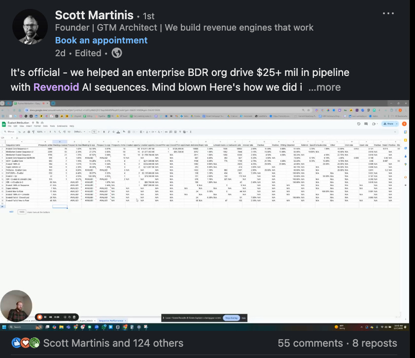 Here is one of the amazing posts by Scott Martinis (GTM Leader) on how a client generated $25 Mn+ in pipeline using Revenoid.