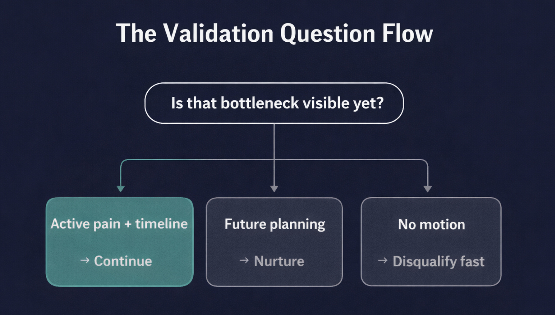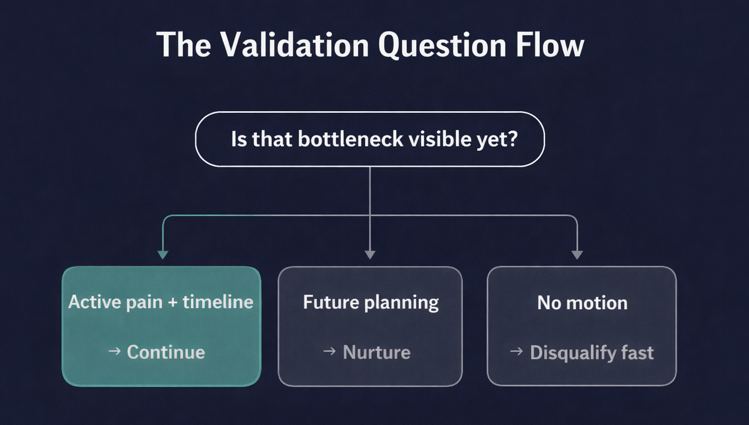 Not discovery. Validation. One question that reveals timing.