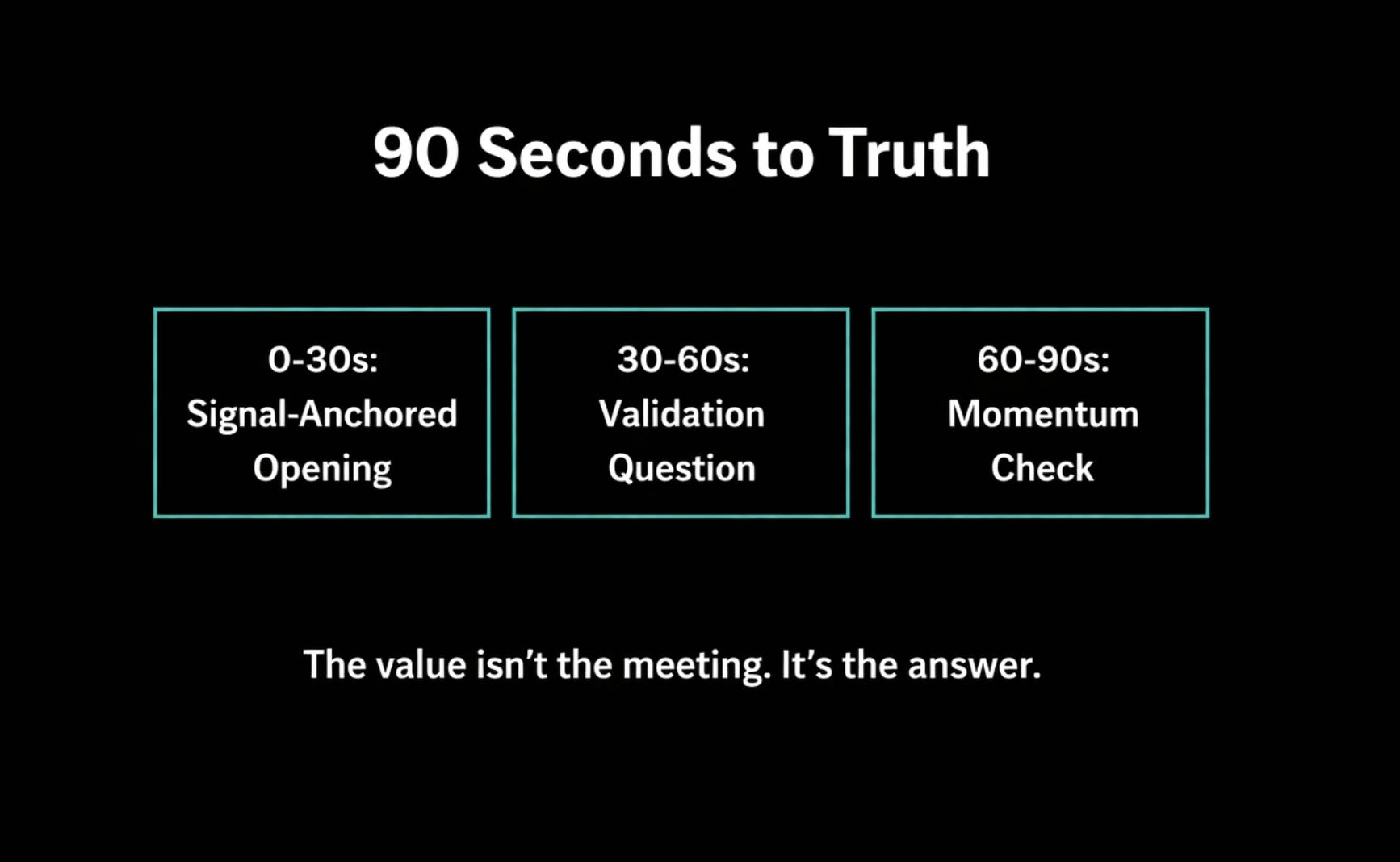 Use the 90-Second Truth Framework. Don’t push for meetings - extract truth.