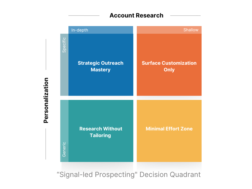 The quadrant has two axes “Personalization (Generic vs Specific)” and “Account Research (Shallow vs In-depth)”.