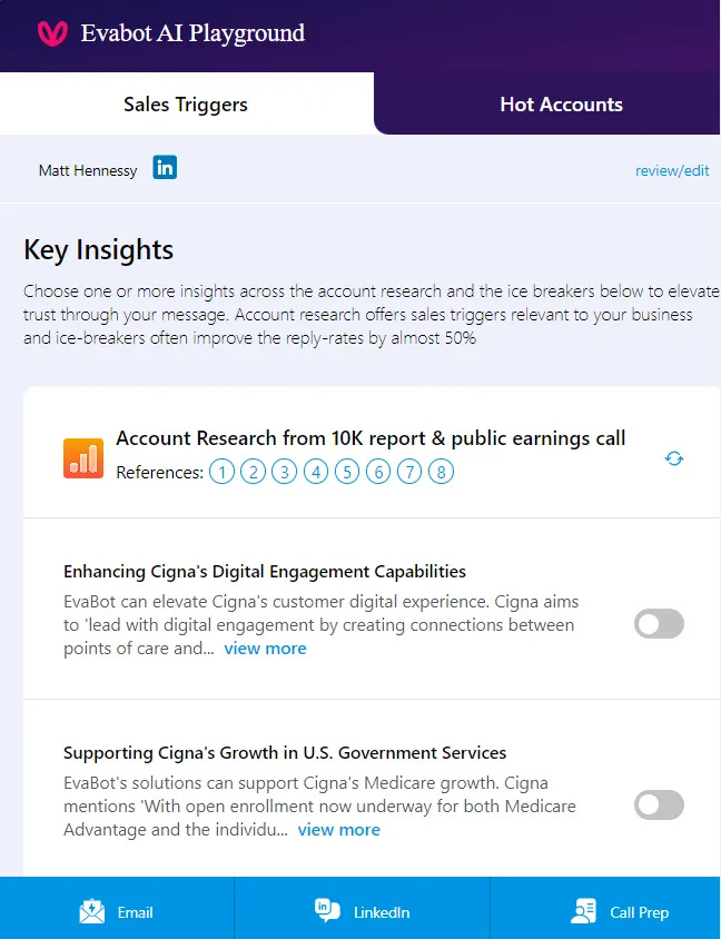 Whether it's a cold call, LinkedIn outreach, or email, you need to personalize the communication using account insights.