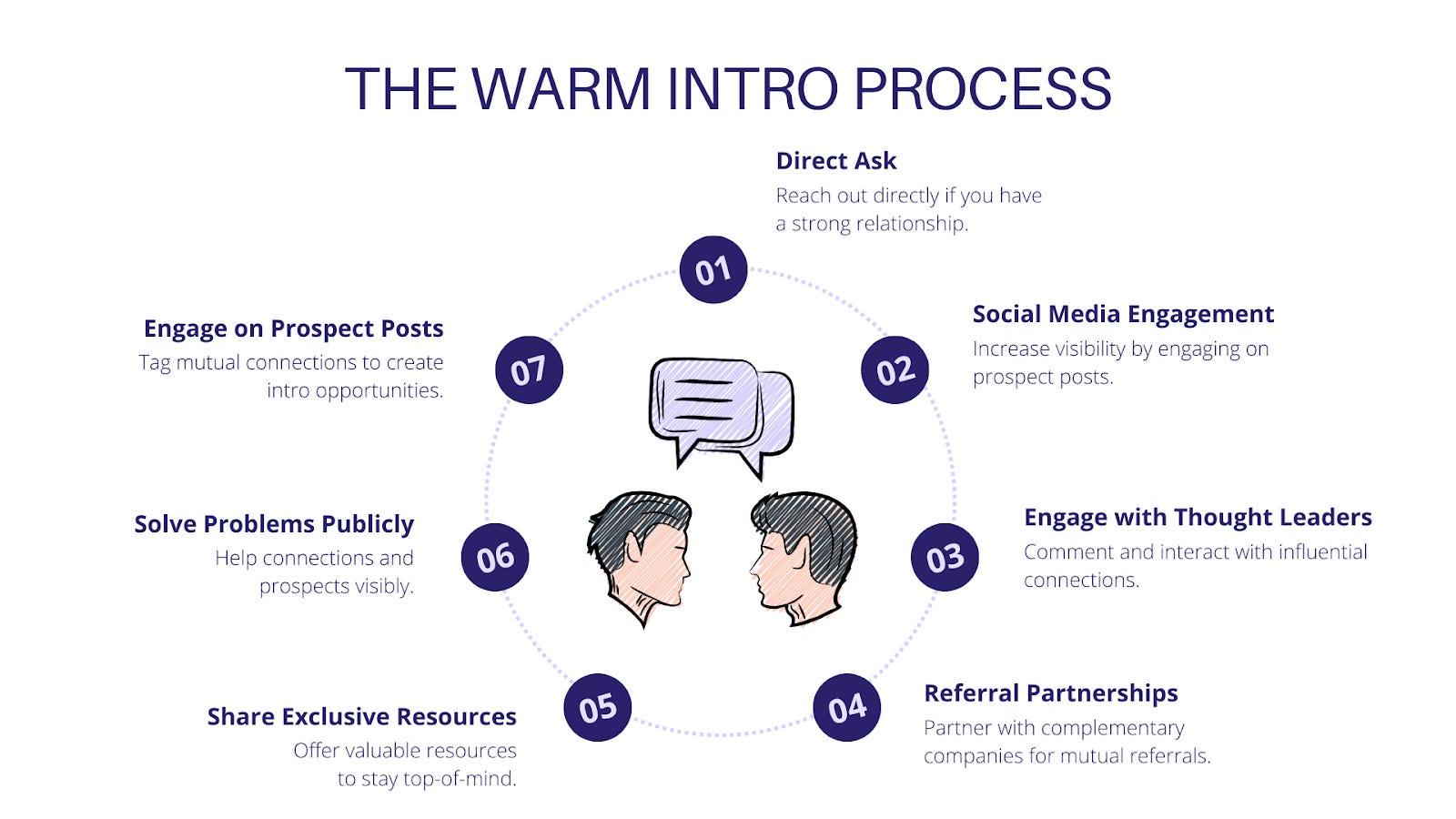 - How to Get a Warm Intro: Reach out to a mutual connection who knows the prospect.