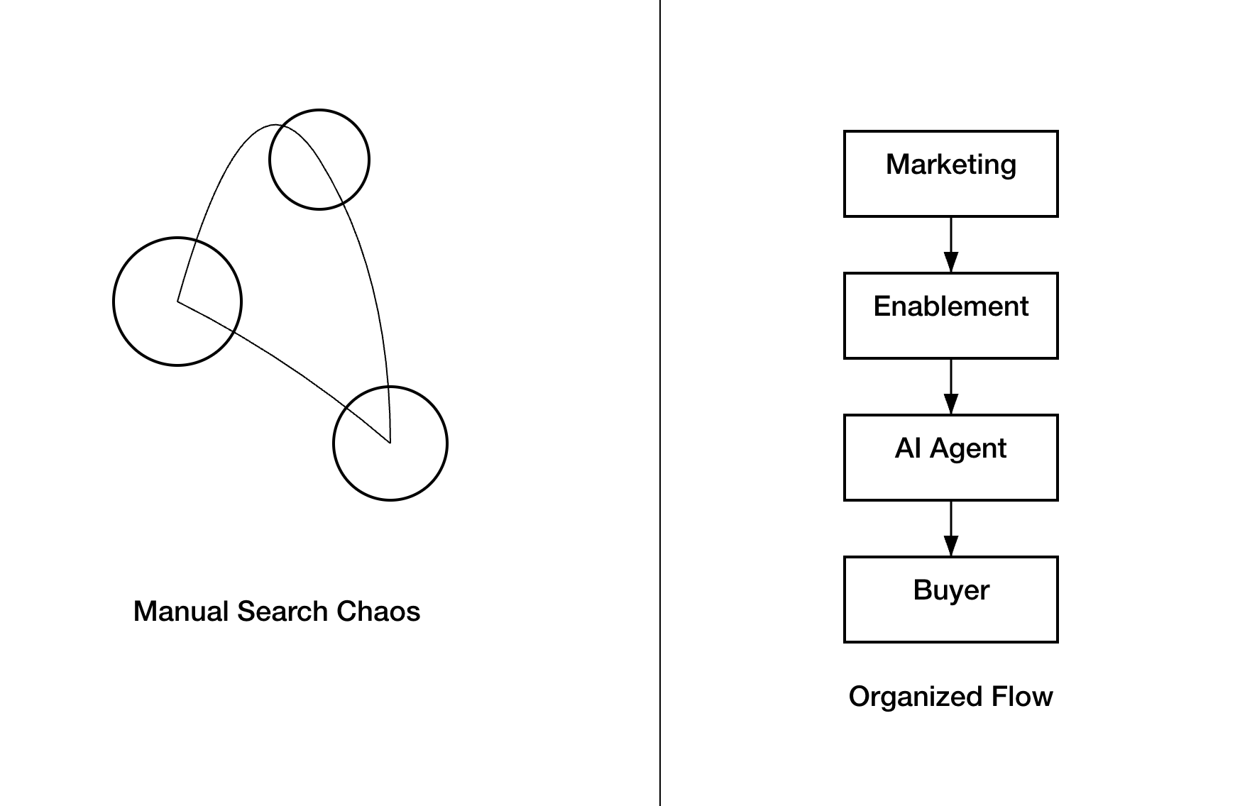 This isn’t about AI writing emails. It’s about AI understanding context deeply enough to bridge the wide gap between your content library and your actual sales conversations.