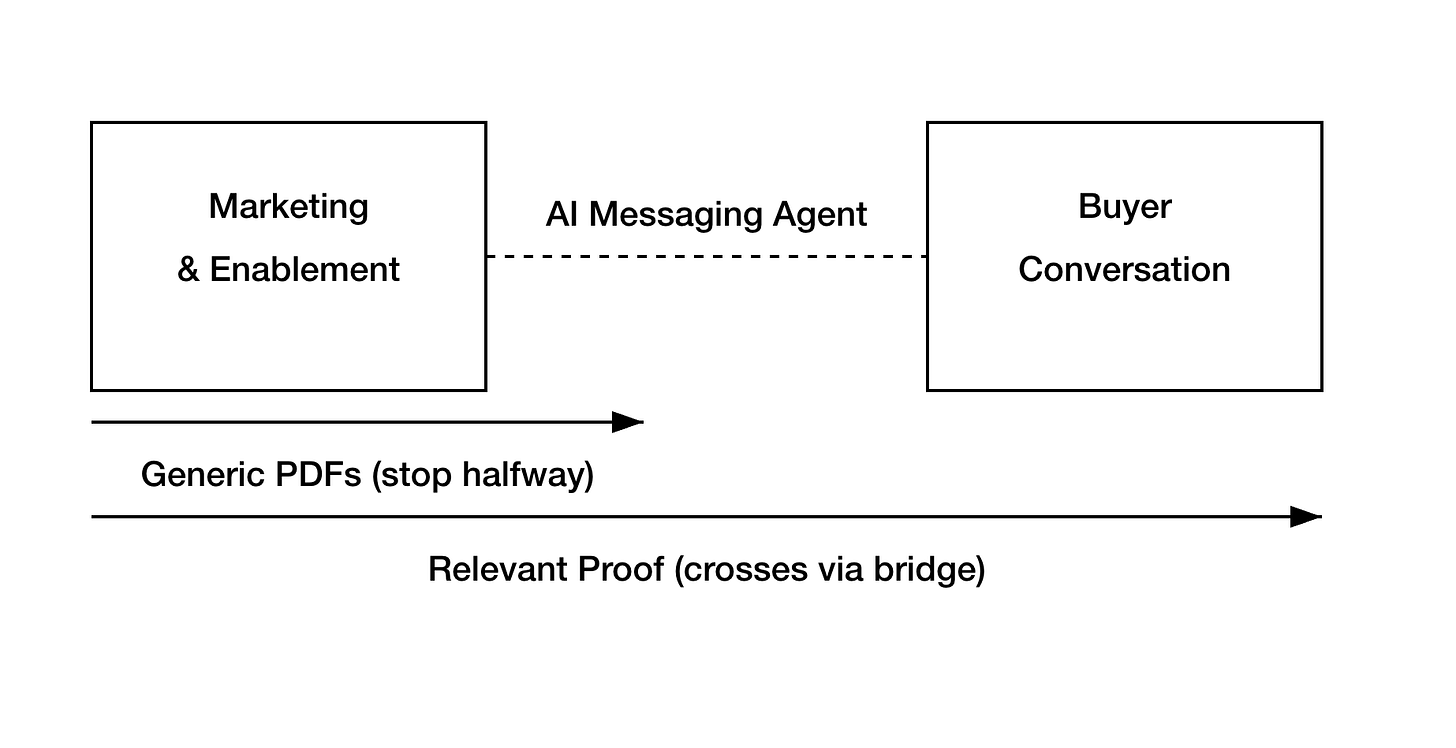 AI messaging agents don’t replace sales reps. They eliminate the friction between your content library and your actual conversations. They ensure every touchpoint carries the credibility of analogous proof. They operationalize the best practice that elite reps do instinctively: connect strategic pain to relevant evidence.
